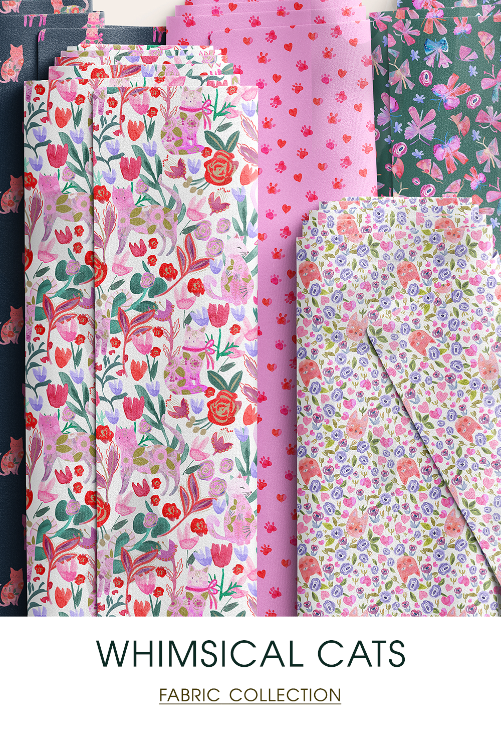 Discover the Whimsical Cats collection by Anela’s Design Studio — a charming assortment of playful cat-themed designs perfect for crafting, sewing, and decorating. This curated range features hand-drawn kitties, cute kitty faces, paw prints, fish bone motifs, and folk-inspired watercolor cats in a variety of colorways and styles that bring personality and joy to every project. Whether you’re creating quirky home decor, adorable apparel, unique quilting fabric, or one-of-a-kind gifts, these whimsical cat patterns add a fun and artistic touch that animal lovers will adore. Made by an experienced surface designer specializing in modern, on-trend prints for interiors and textiles, this collection blends creativity with versatility for endless design possibilities.