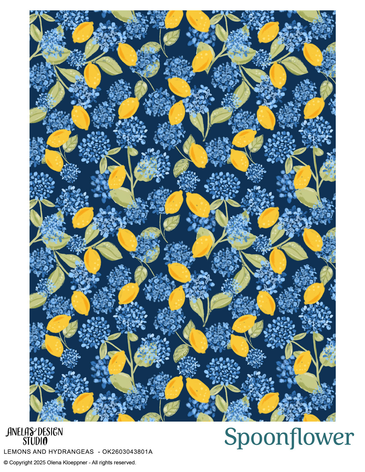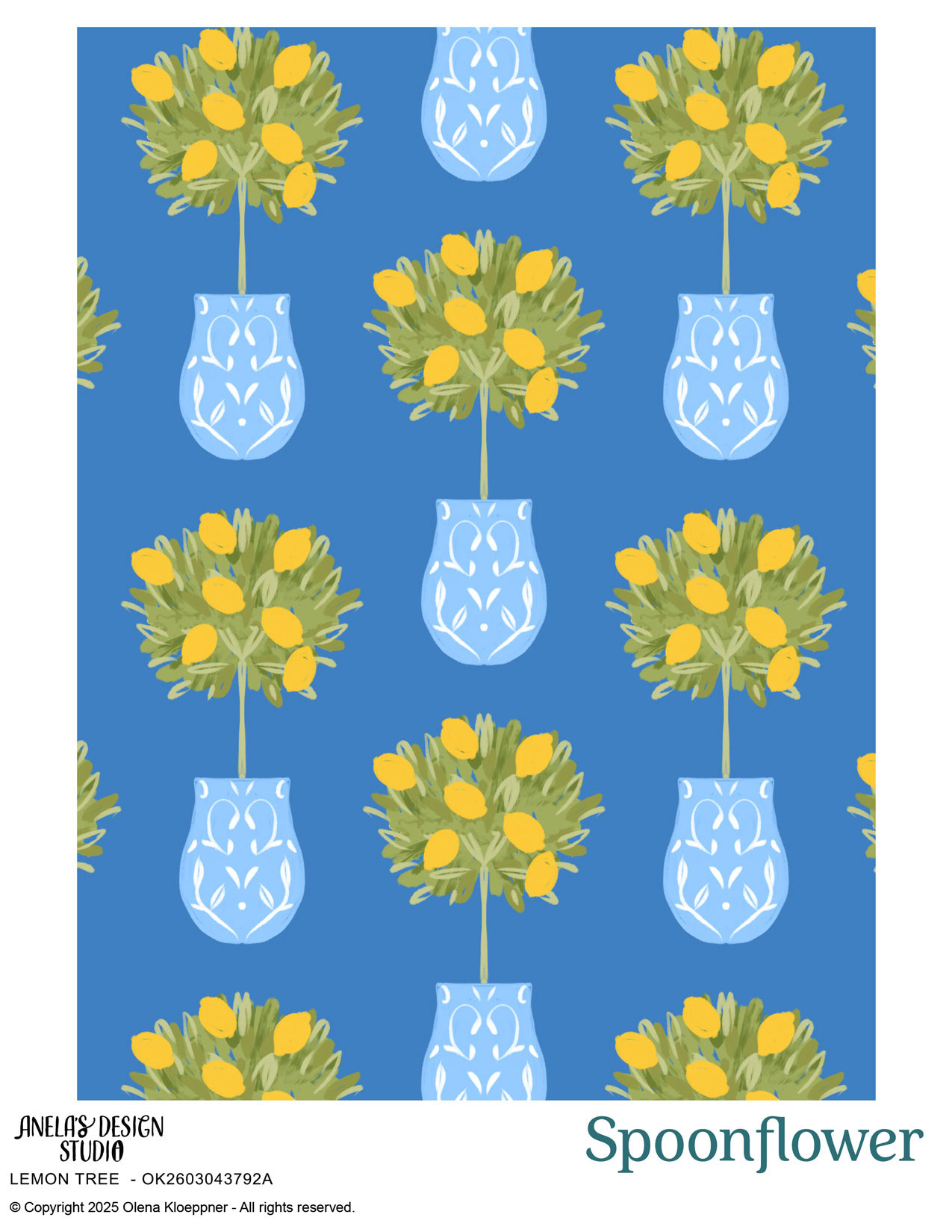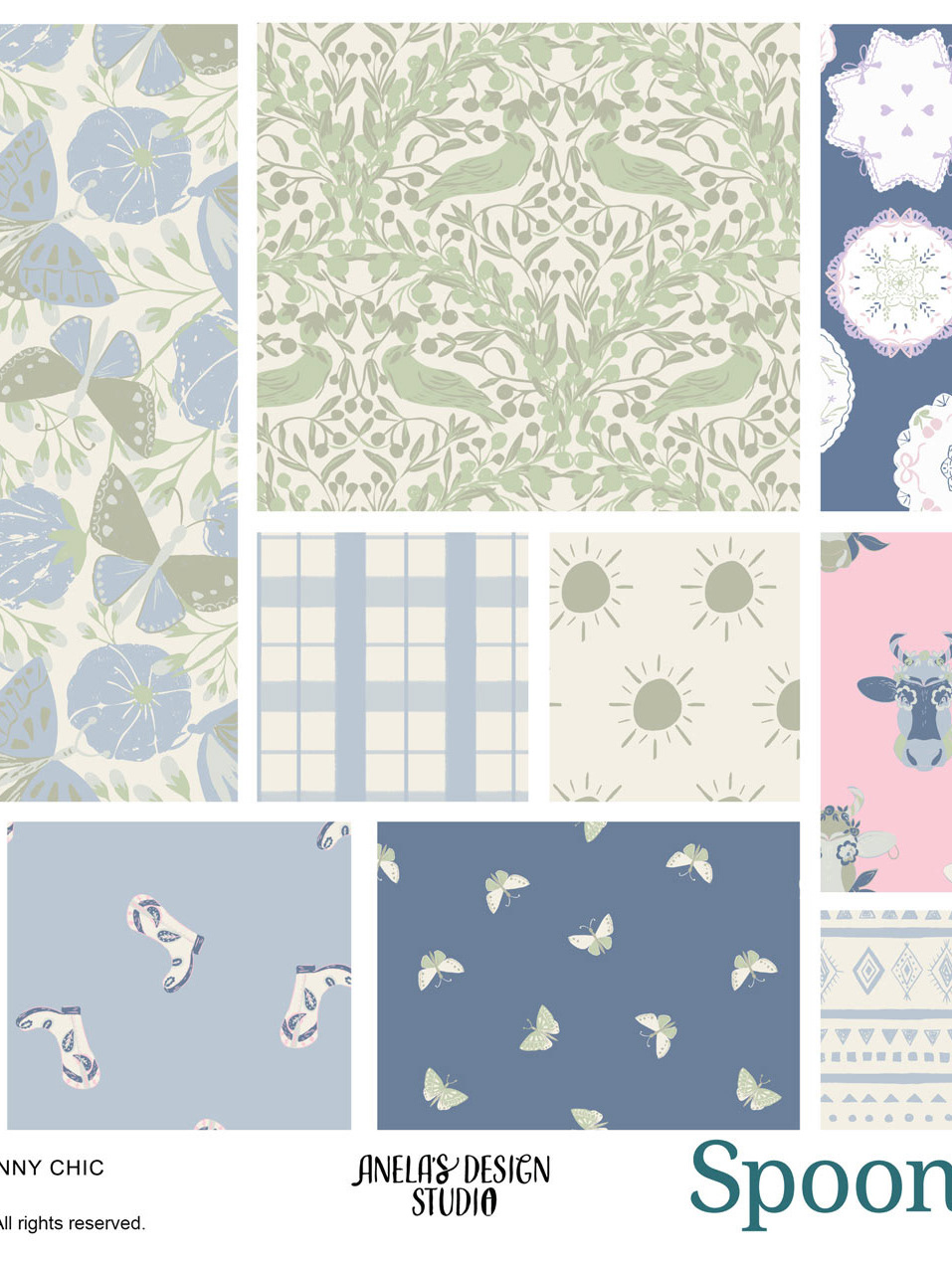 Mediterranean Hues is a fresh surface pattern collection inspired by sunlit coastal living. Citrus branches, florals, ceramics, and simple coastal motifs are paired with painterly textures, stripes, and playful coordinates.