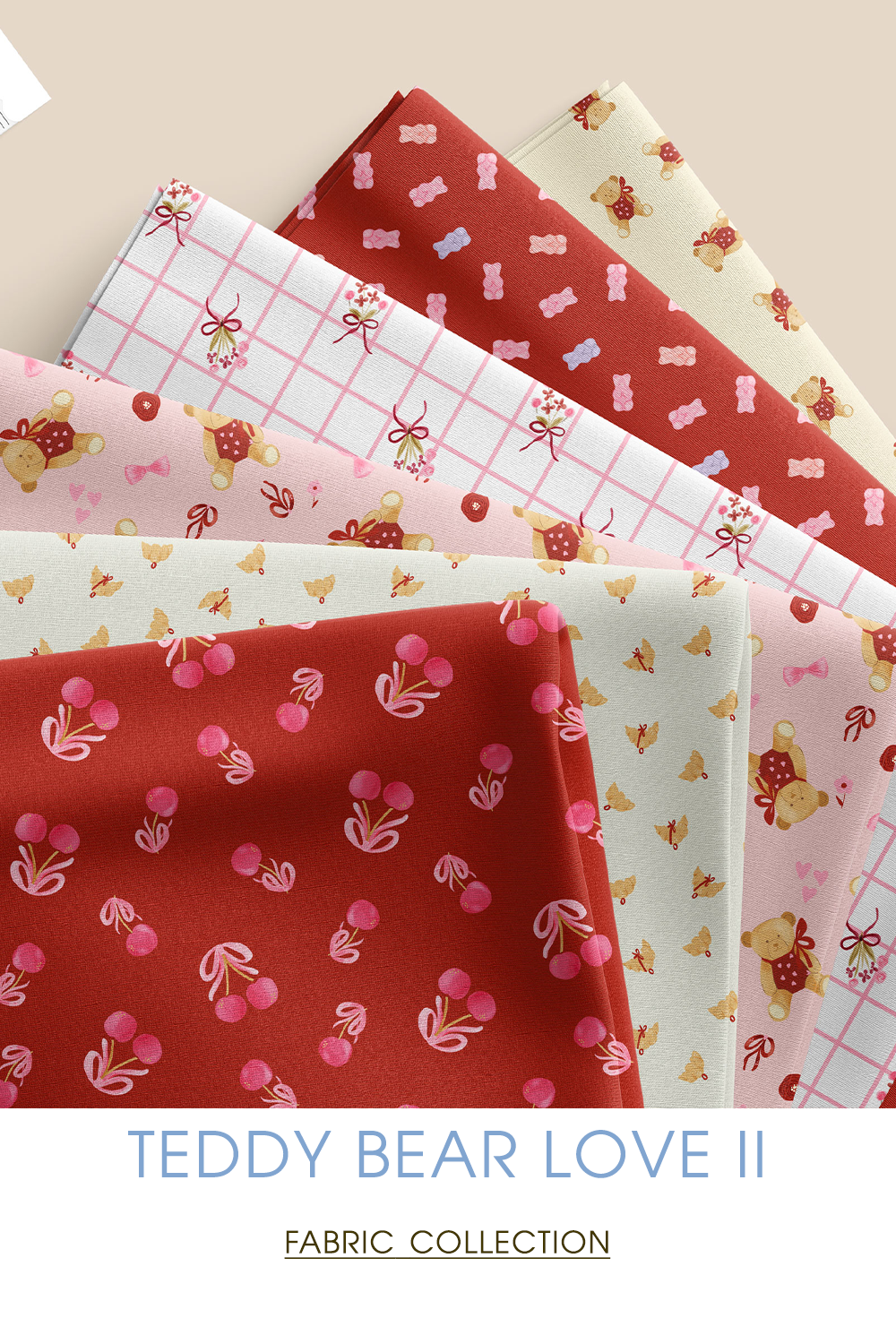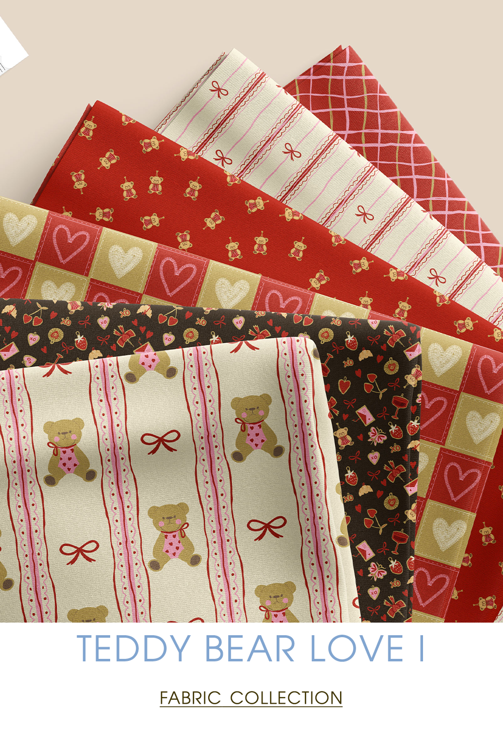 A charming retro-inspired fabric collection filled with teddy bears, hearts, bows, and sweet novelty motifs. Softly nostalgic and playfully preppy, these coordinating prints bring cozy romance and vintage storybook charm to quilts, clothing, and heartfelt handmade pieces.